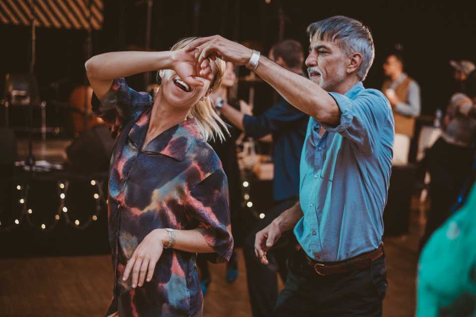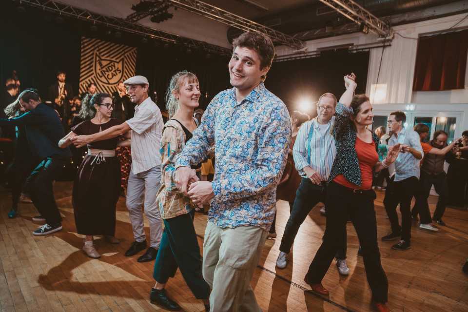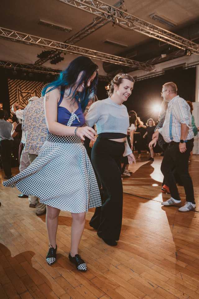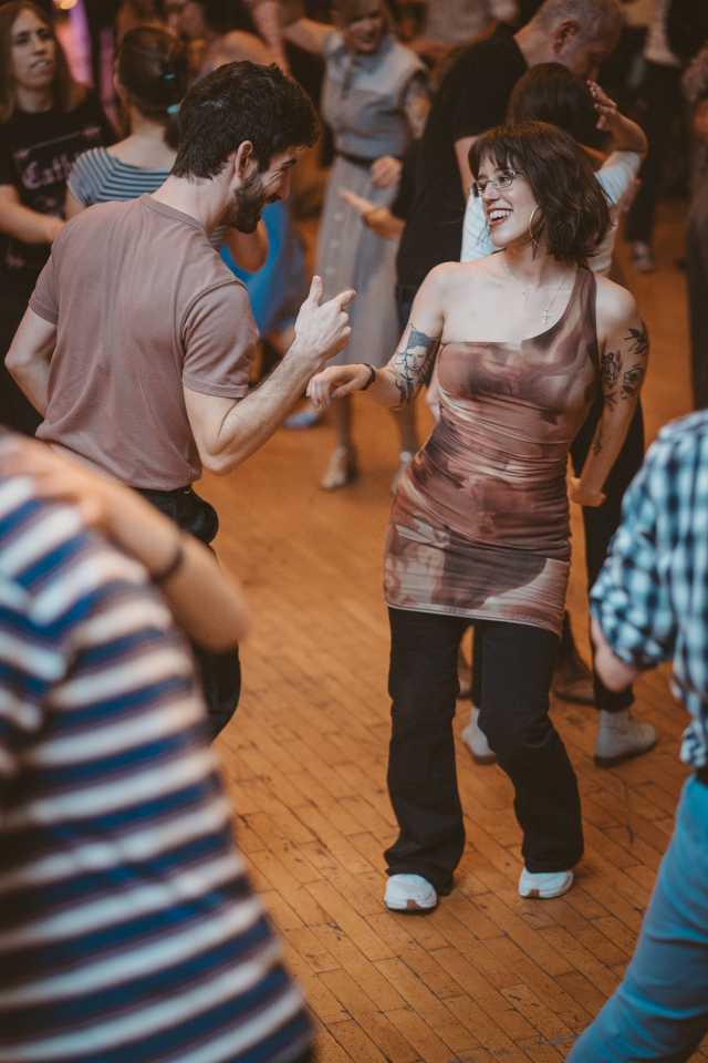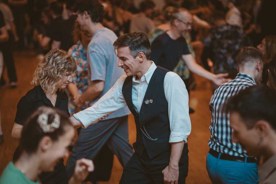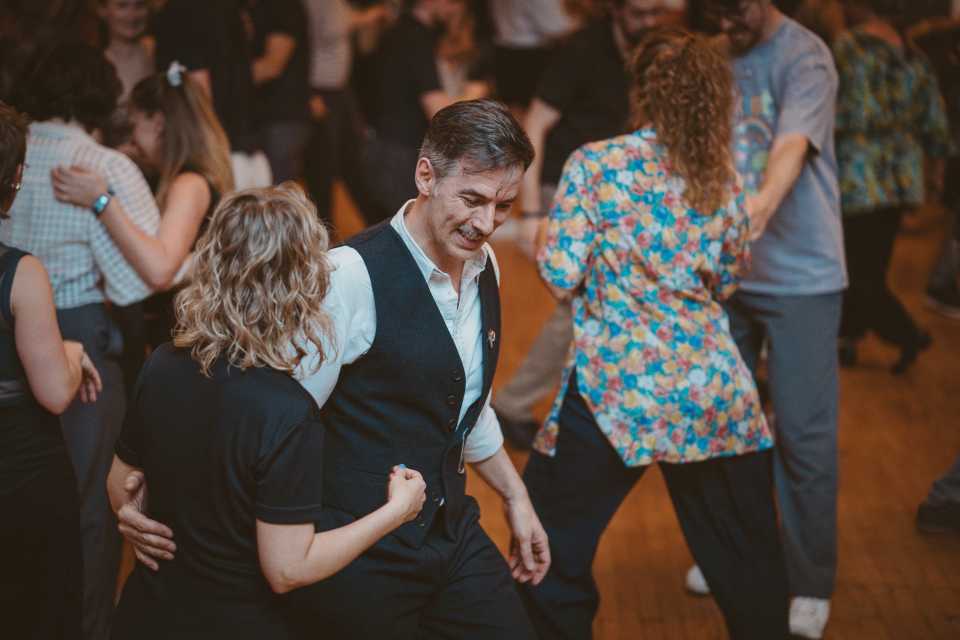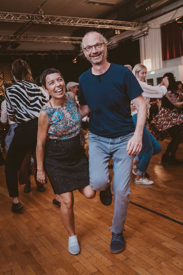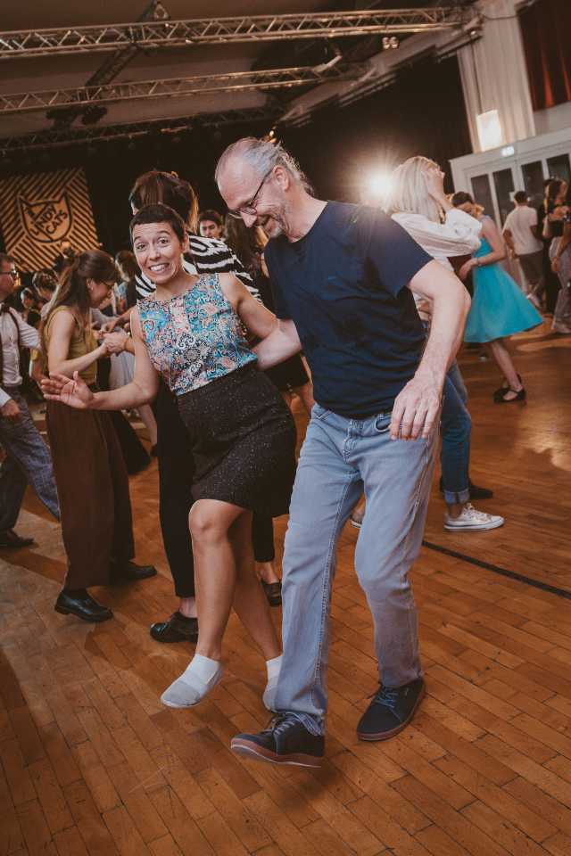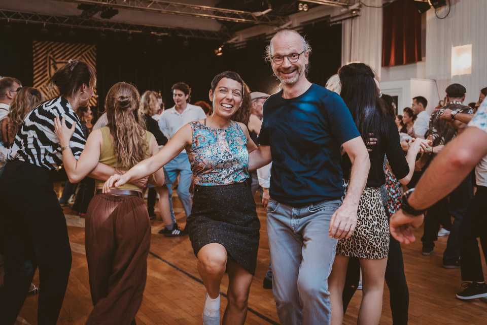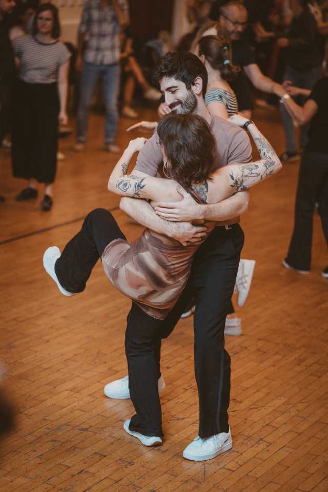 While he still enjoys competing and ‚throwing down‘ on the dance floor, his favorite moments are undoubtedly spent social dancing. Alberto finds inspiration in every lindyhopper he meets, as each encounter on the dance floor brings something new. Dancing fuels his energy and curiosity, driving him to continually explore the history and culture of the dance. His pockets are filled with rhythmic variations and…jokes 😉